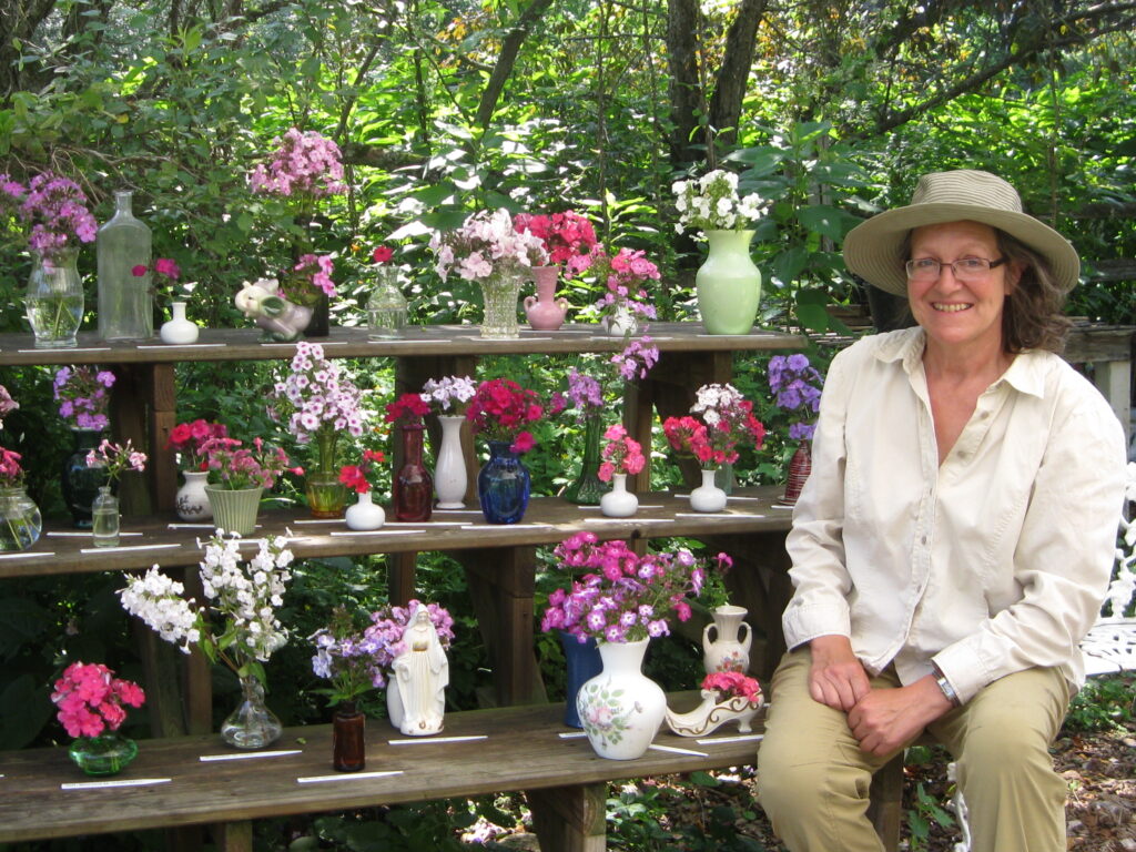 During the Fest, Rachel will be leading garden tours every afternoon at 1:00 (except Mondays and Tuesdays), and we occasionally have a guest speaker as well. There will be a phlox cut flower display, where you can compare the fragrance and subtleties of color side by side, and you can sign up for door prizes, including a chance to ‘win’ Rachel for a garden consultation.