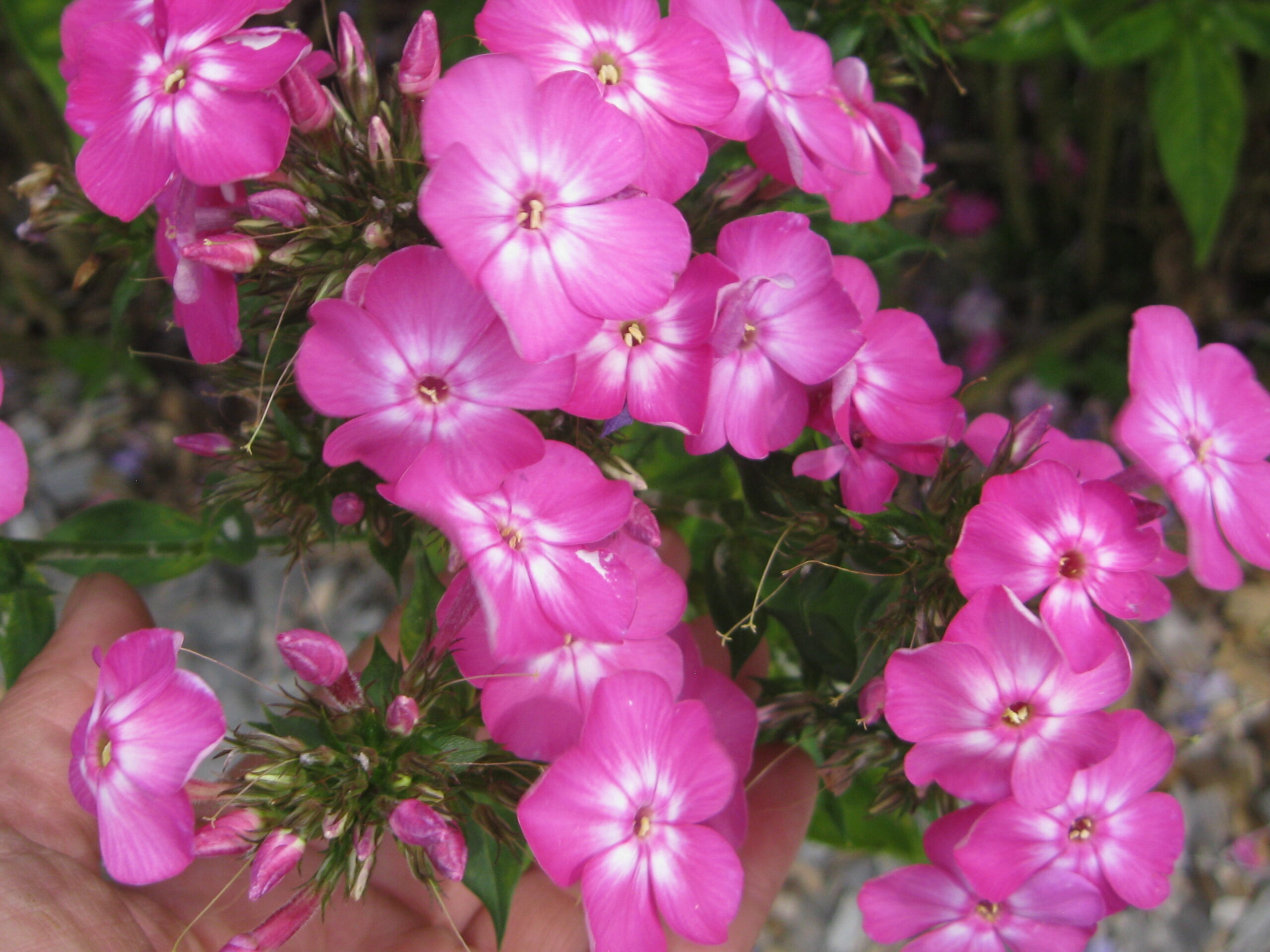 Phlox ‘Cabot Pink’ hasĀ a distinctive shade of strong reddish-pink, centered with a large clearly defined cream-colored eye. This strong coloring, not easily captured in photographs, commands the eye in the landscape. ‘Cabot Pink’ is one of my home names, or working titles, while I endeavor to determine the original name. As the ‘ full disclosure’ name indicates, it came from a garden in Cabot, Vermont, not far from the famous Cabot Cheese Creamery. Because it can be found in numerous gardens in the area, I believe it to have been a named cultivar, and not just a seedling. It is a tall and hardy grower, and is floriferous even when the soil is not all that it should be, and, as is so often the case with the heirloom cultivars, it has very good resistance to mildew.