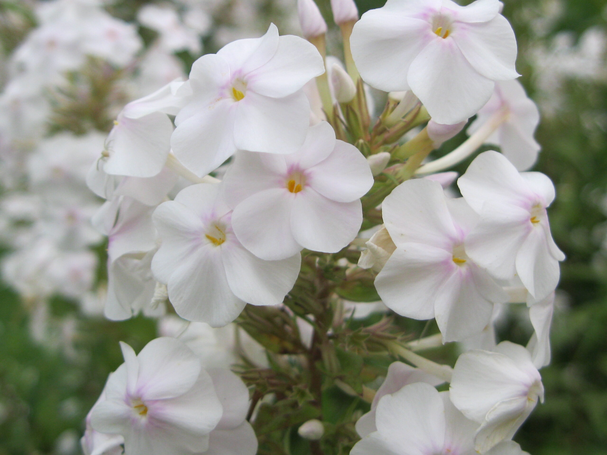 Phlox ‘Flower Power’ is white with a pale blush, and has excellent mildew resistance and vigor.
